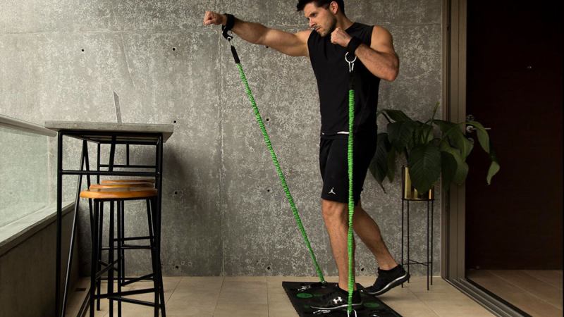 Haga un gran ejercicio donde quiera, siempre que tenga tiempo. Este entrenador de bandas de resistencia es completamente portátil y le permite hacer cientos de ejercicios desde una plataforma simple.
