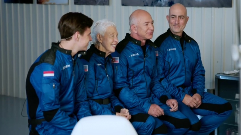 Entre los que han abordado el barco junto a Bezos se encuentran el hermano del fundador de Amazon, Mark Bezos, el piloto de Mercury 13 de 82 años Wally Funk y Oliver Daemen de 18 años.