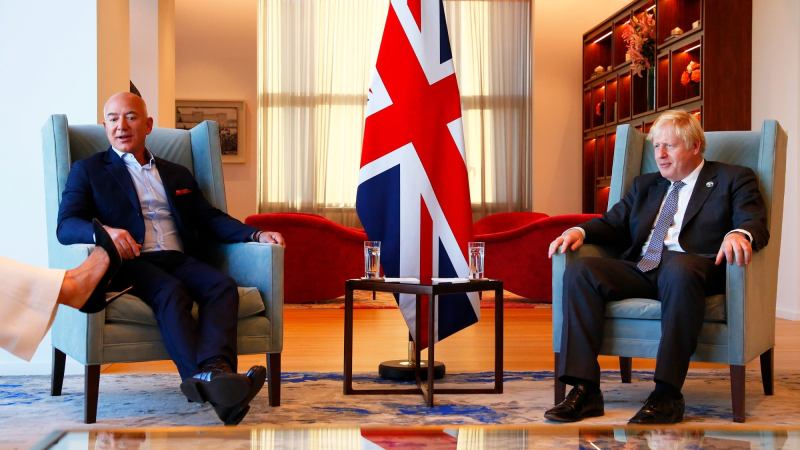 Jeff Bezos y Boris Johnson se reúnen durante la AGNU