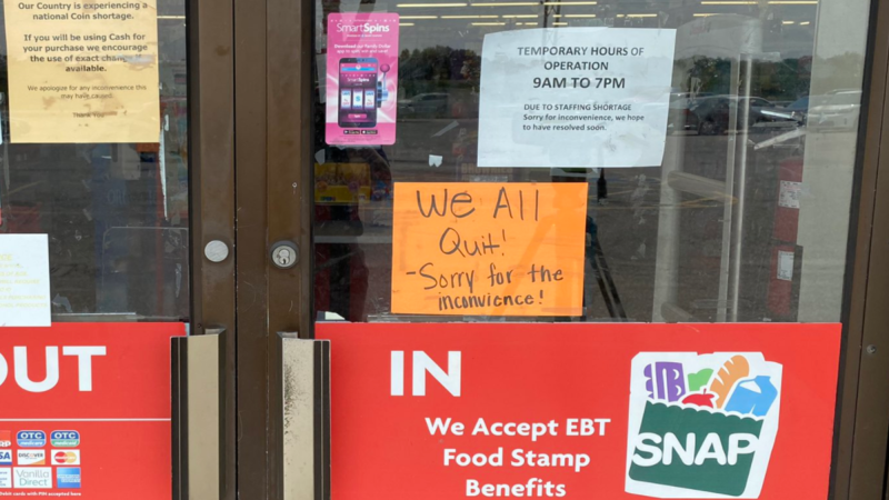 KOLN informó que los dos últimos empleados restantes renunciaron y colocaron el letrero el domingo, mientras que el gerente de la tienda había dejado su puesto cuatro o cinco días antes.